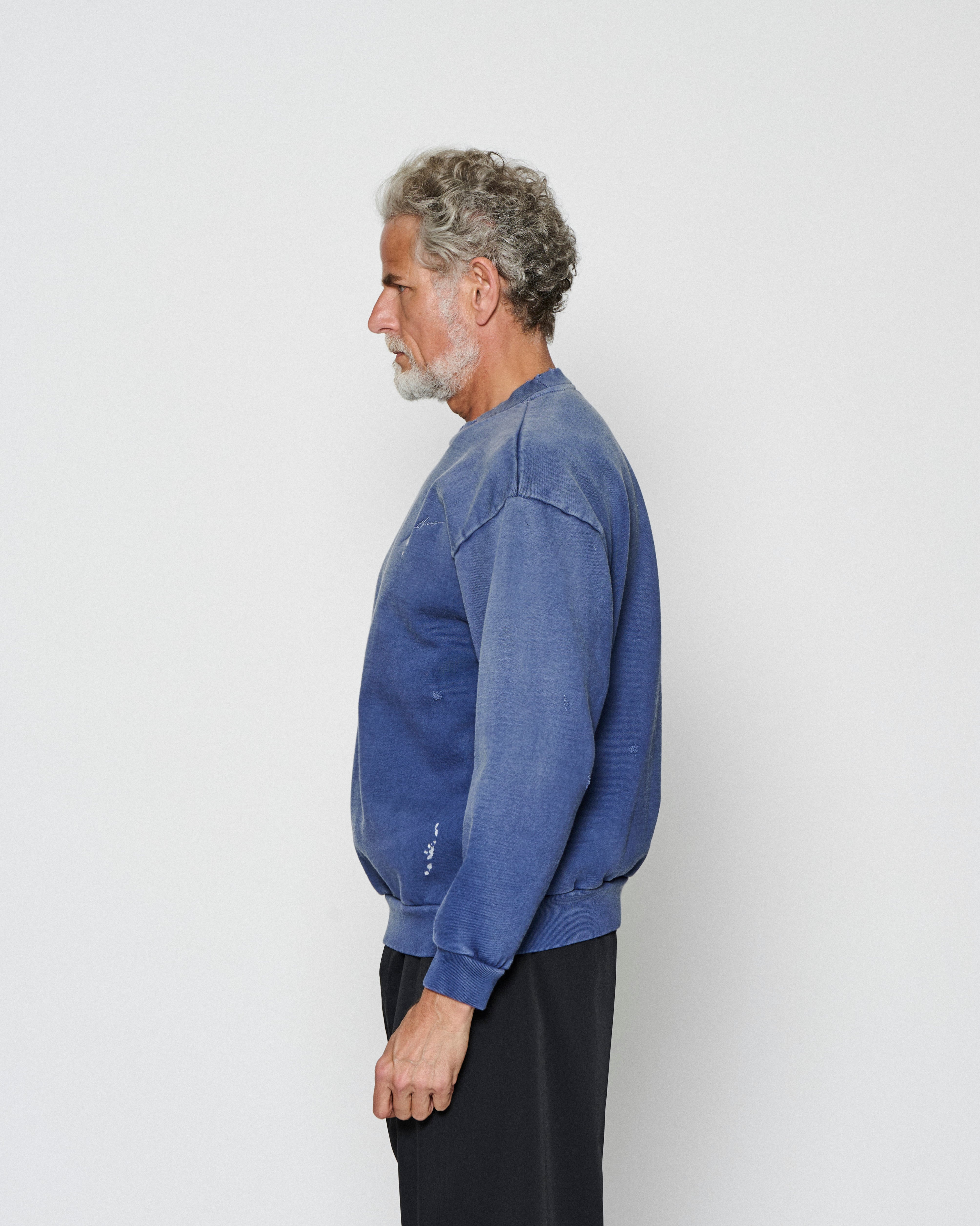 アームホールの大きさや袖の長さ、肩落ちなどのバランス感を調節し、大きすぎない絶妙なゆったり感を実現したクルーネックスウェット。