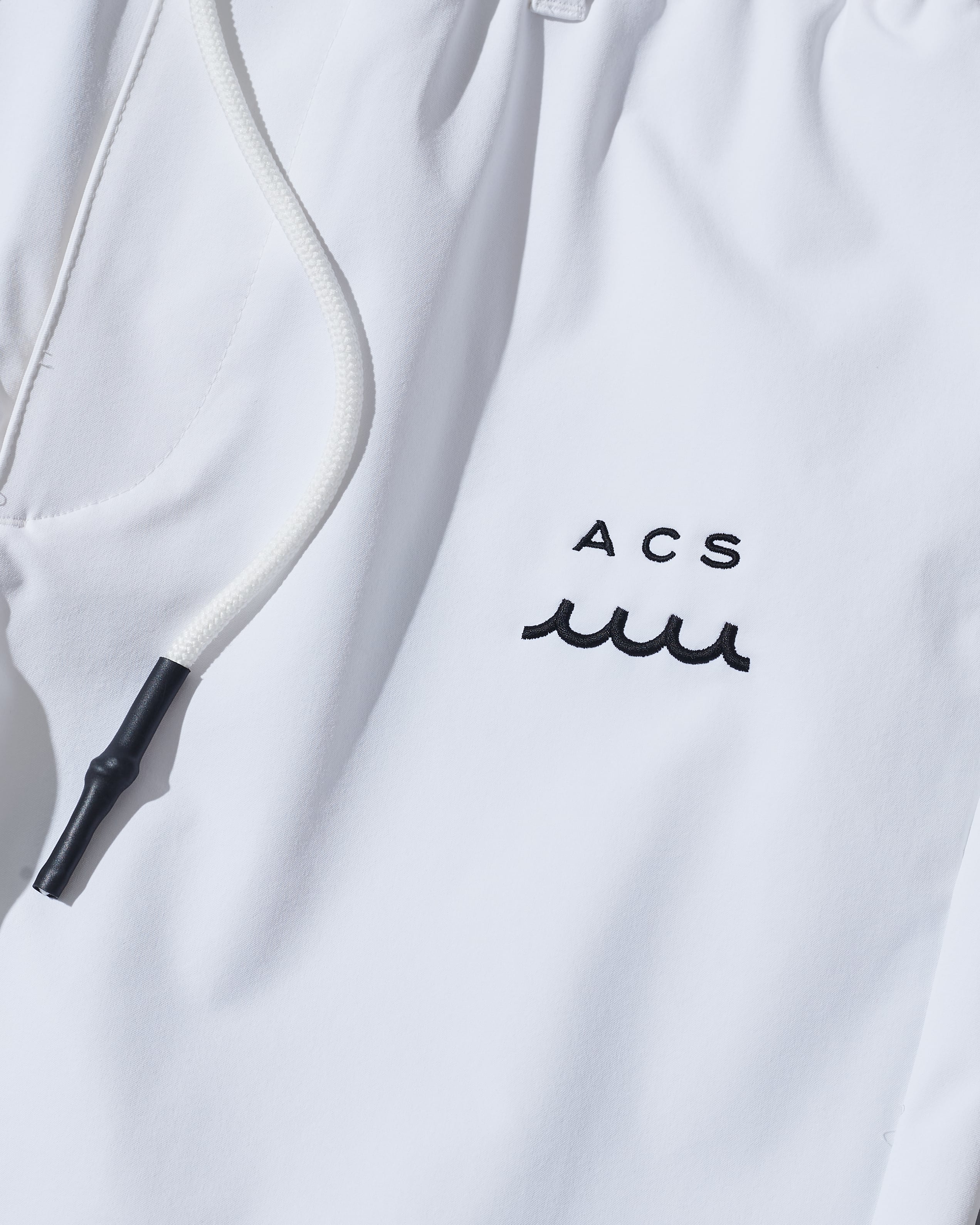 ポケット袋布にはメッシュ素材、ウエストにはシュリンクチップ加工を施したドローコードを使用。
