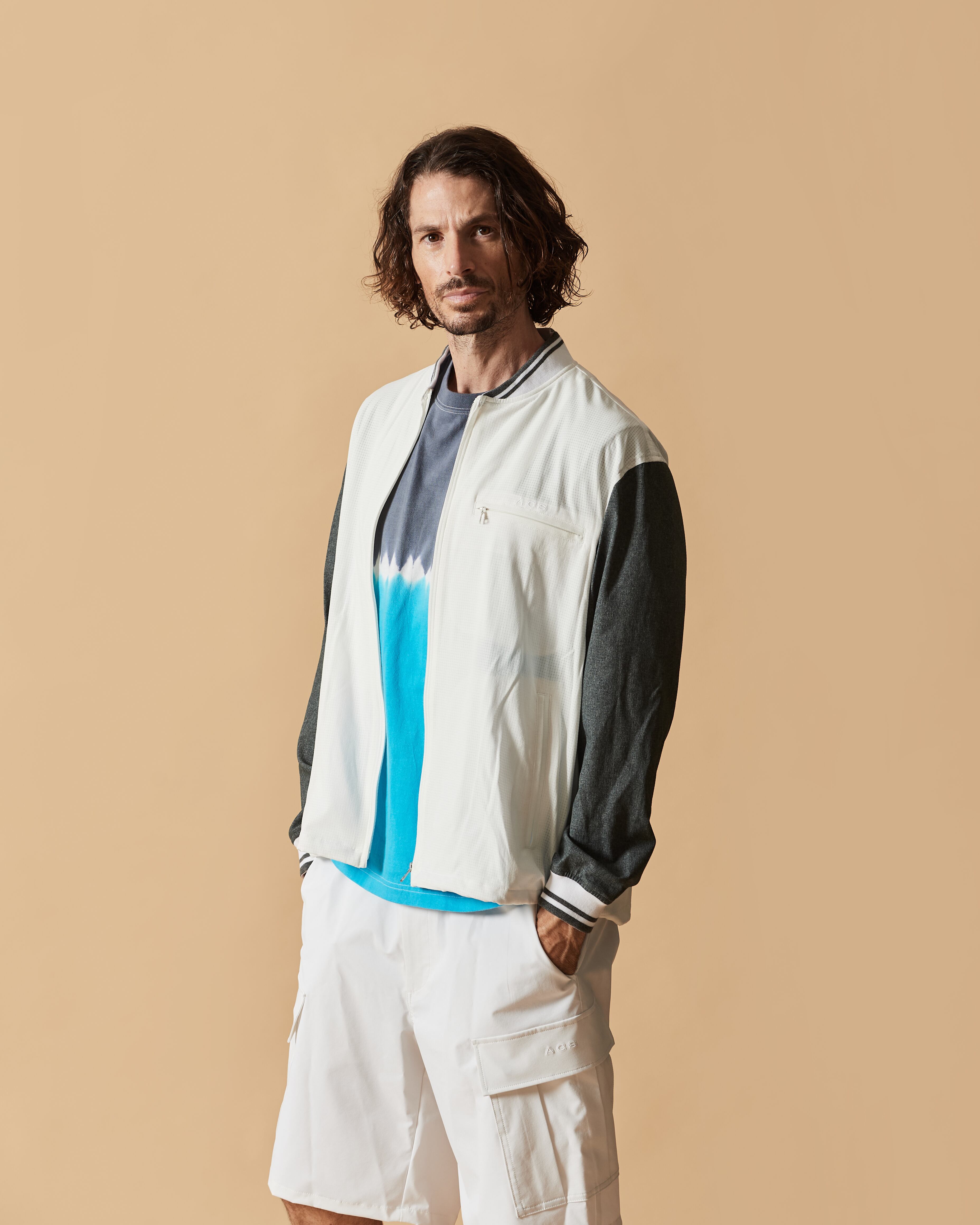 ヴィンテージアイテムをベースに、機能的な現代の生地と仕様を掛け合わせたリブブルゾン。胸ポケットにはファスナーを配置。