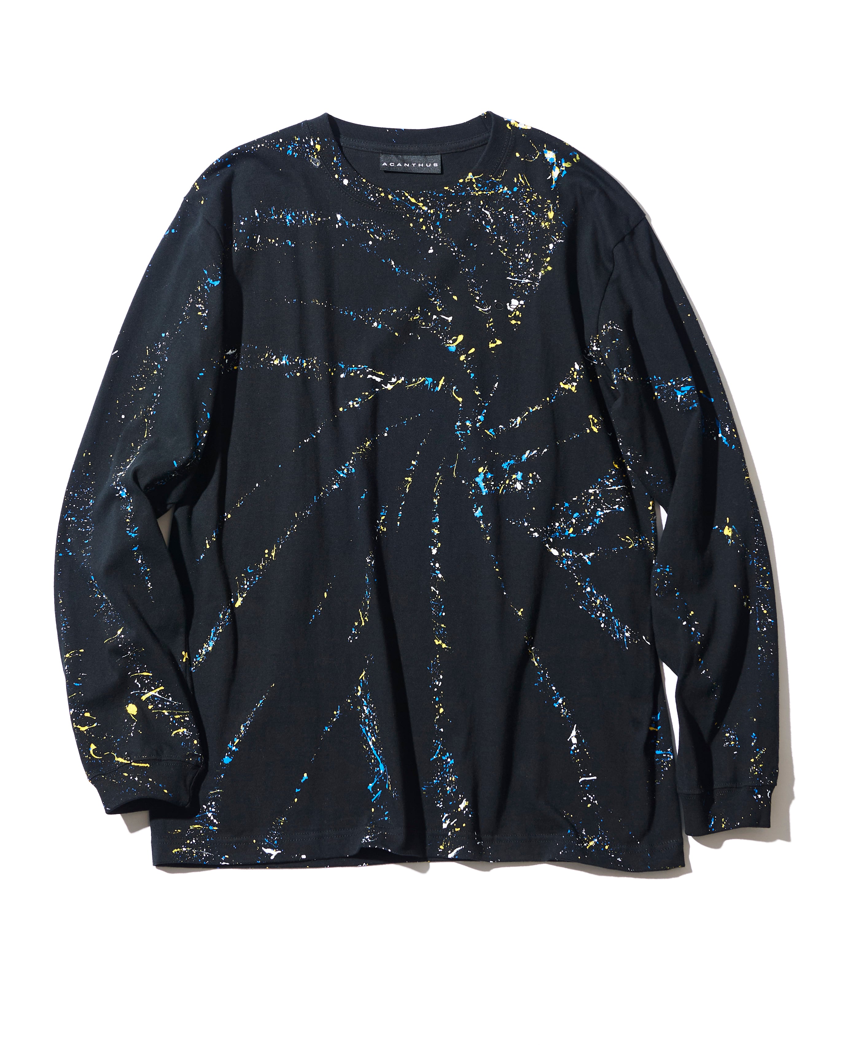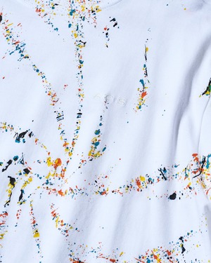 1点1点手作業によって、スパイラルスプラッシュペイント加工を施しており、プリントでは表現できないムラ感と立体感を演出しています。