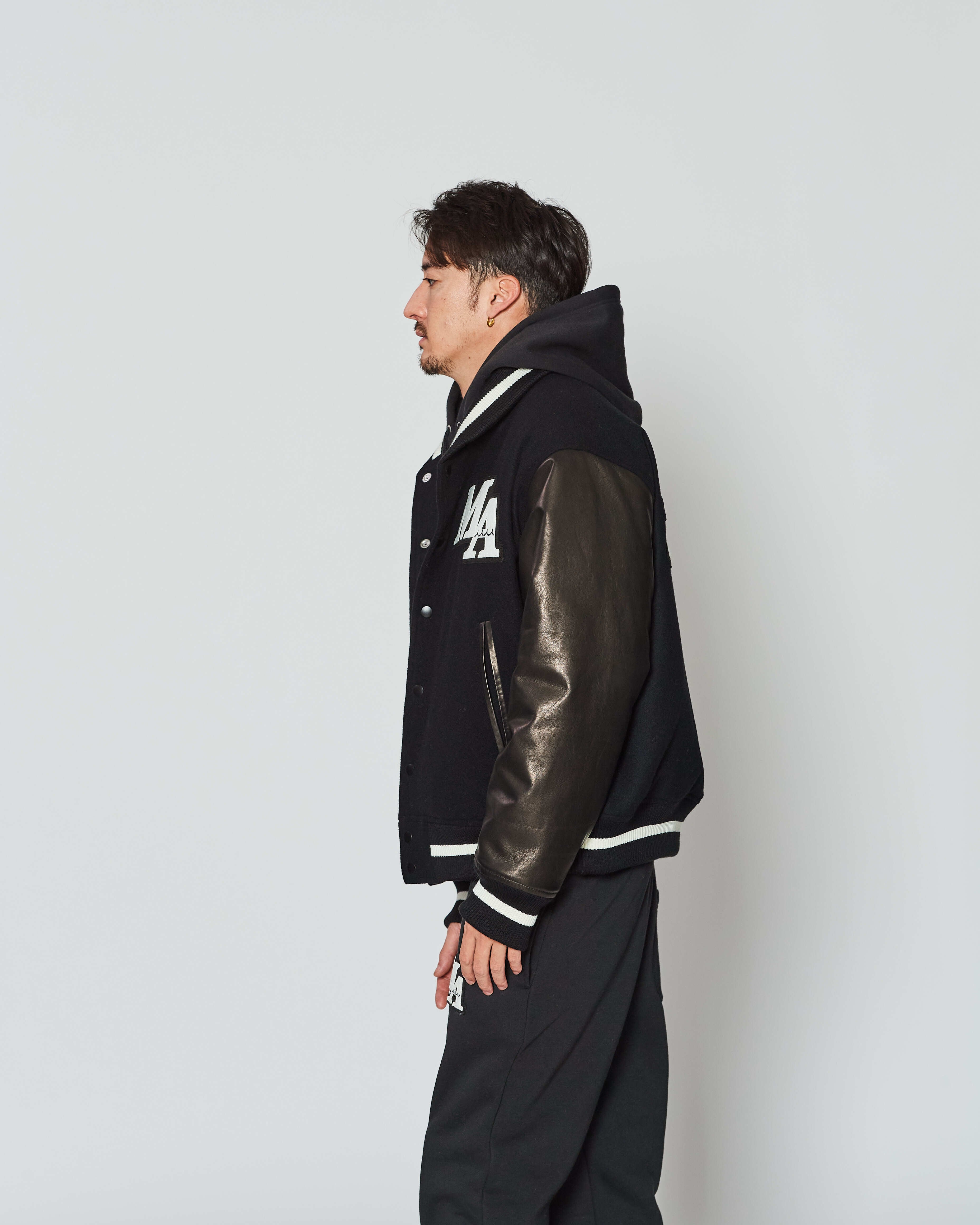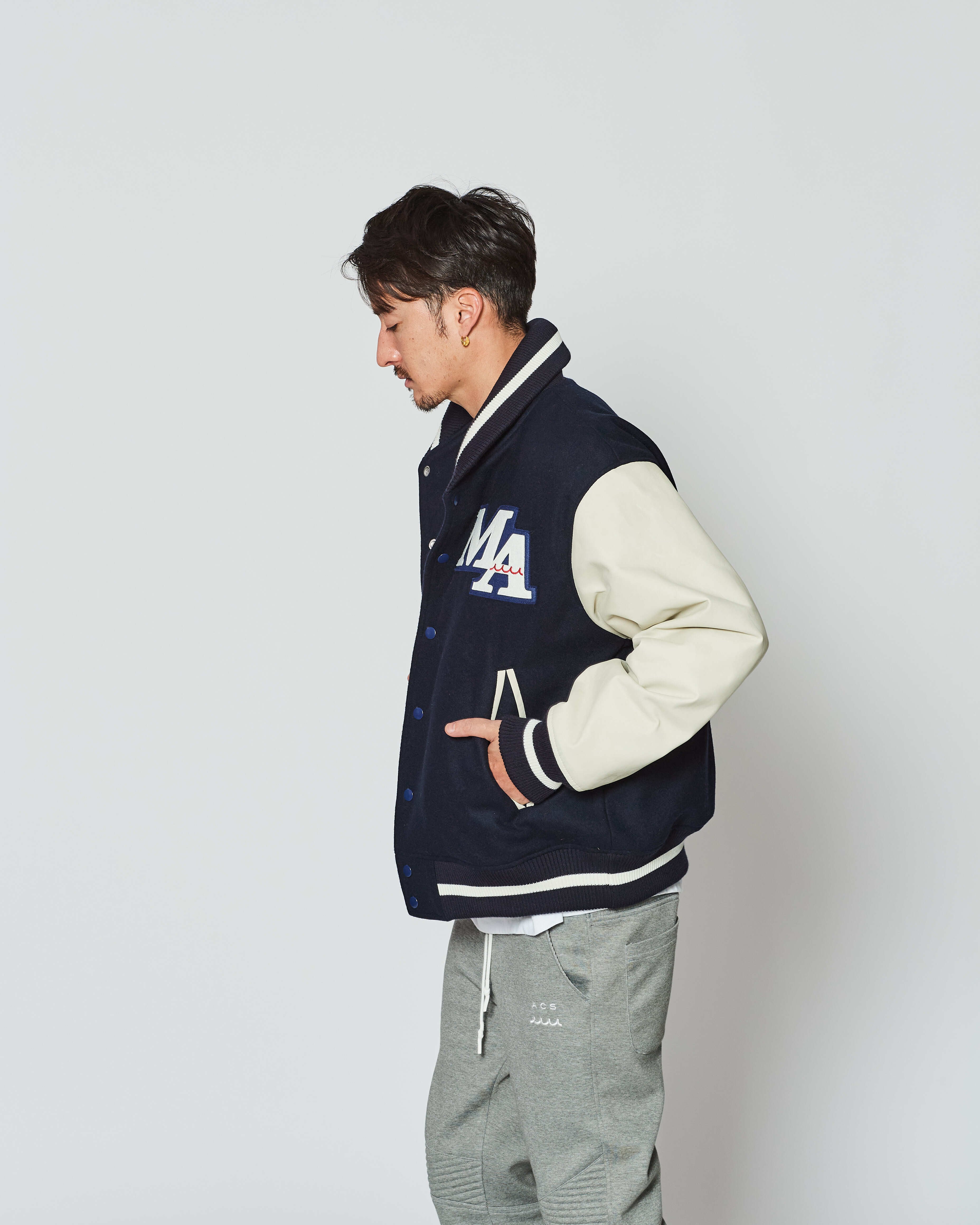 袖にはACANTHUSの定番スタジャンでも使用している本カウレザーを使用。