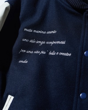 右胸にはmuta marineのイタリア語のコンセプト内容を刺繍にて表現。