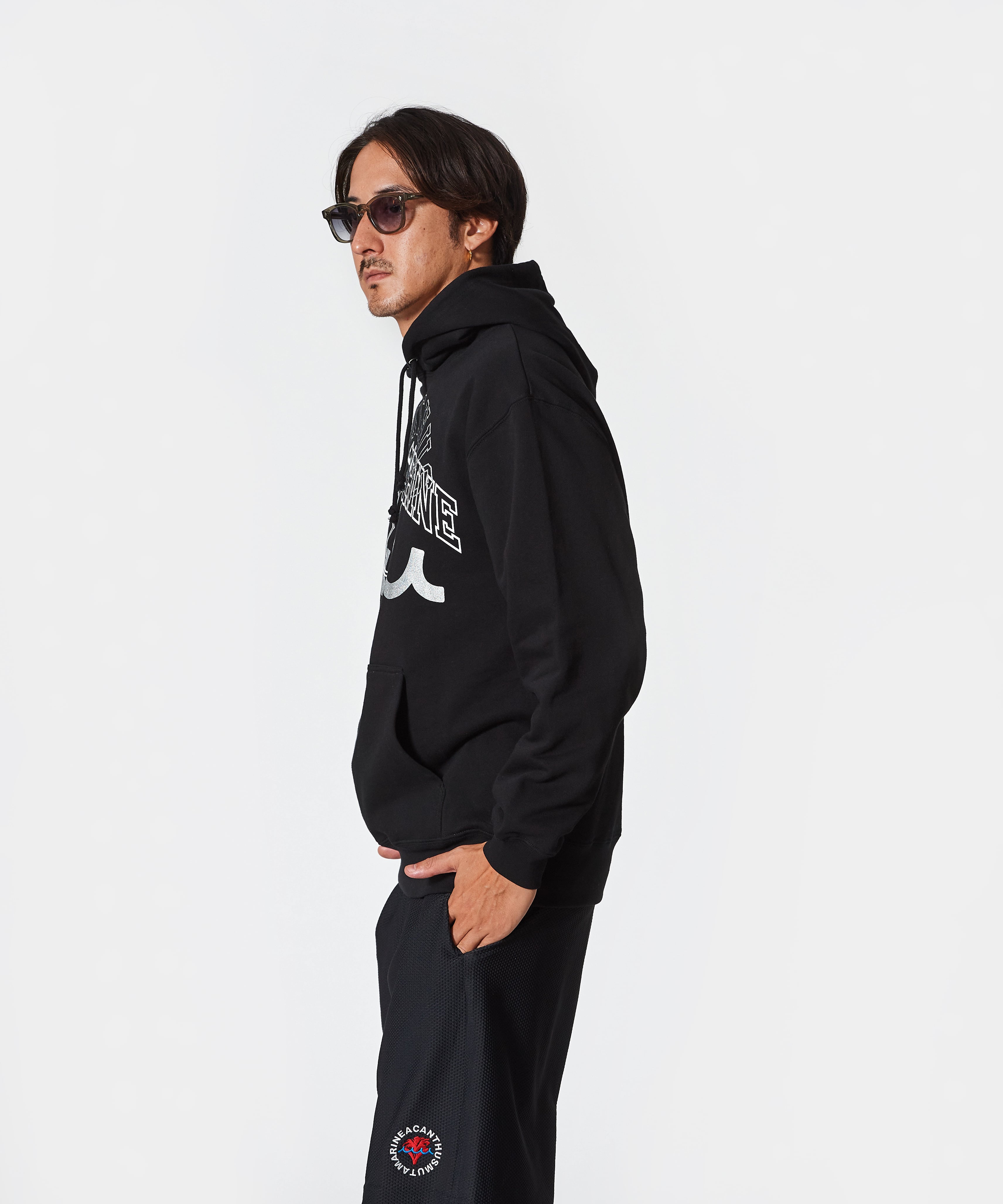 裏パイルスウェット生地を使用したプルオーバースウェットパーカー。